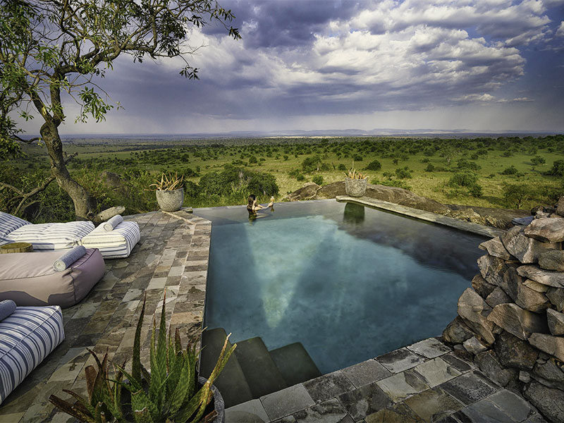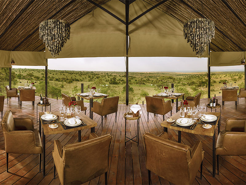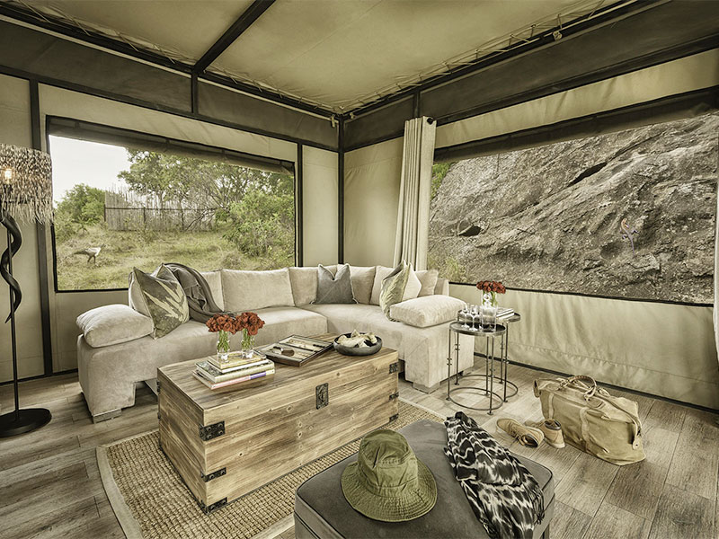 Gelegen op 35 minuten van de rivier de Mara, op een klein kopje, past het kamp op natuurlijke wijze in de omgeving tussen de bomen en rotsblokken, met een overloopzwembad in een natuurlijke grot. Het kamp is strategisch gelegen, ver weg van de drukte van safarivoertuigen, terwijl het toch gemakkelijke toegang tot de rivier en uitzicht op de migratieroutes van de gnoes behoudt.