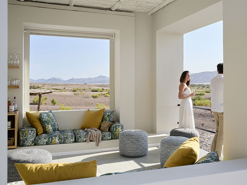 De luxe Okahirongo Elephant Lodge bevindt zich op een prachtige locatie in het Kaokaveld-gebied naast Skeleton Coast National Park. De lodge biedt een bijzondere woestijnervaring voor maximaal 18 gasten.