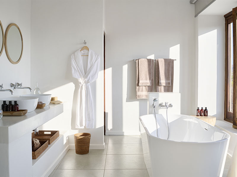 U overnacht in één van de 7 luxe chalets die allen zijn voorzien van Queen size bed en een grote badkamer. Vanuit uw bad heeft u een prachtig uitzicht op de omgeving. U kunt in privacy genieten van een binnen- of buitendouche.