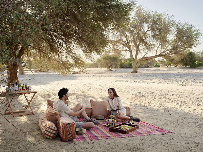 De gemeenschappelijke lounge en eetkamer van de Okahirongo Elephant Lodge hebben open zijkanten, voor oogverblindende vergezichten over de woestijn. Het overloopzwembad heeft oneindige uitzichten op de bergen in de verte en er is een traditionele boma, waar u 's avonds rond een vuur kunt ervaringen kunt delen.