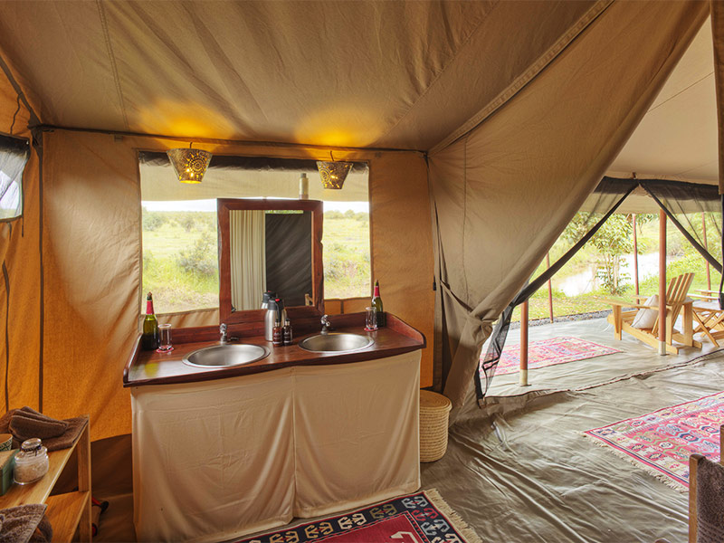 De tenten van Ol Pejeta Bush Camp zijn voorzien van comfortabele bedden, oplaadbare verlichting op zonne-energie (welke ongeveer 6 uur per avond branden), wastafels, toilet en 'bucket showers'.