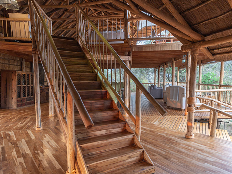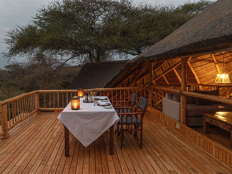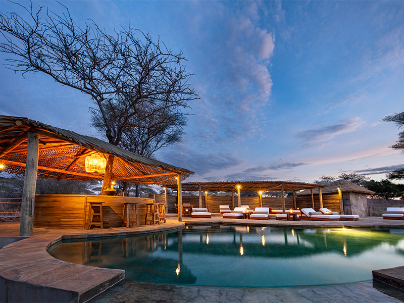 De bibliotheek, de bar en het zwembad bieden een relaxte atmosfeer om na een wandelsafari even heerlijk bij te komen en om ‘s avonds bij het kampvuur naar het nachtelijk orkest van de dieren luisteren.