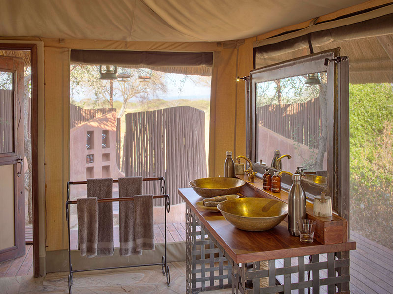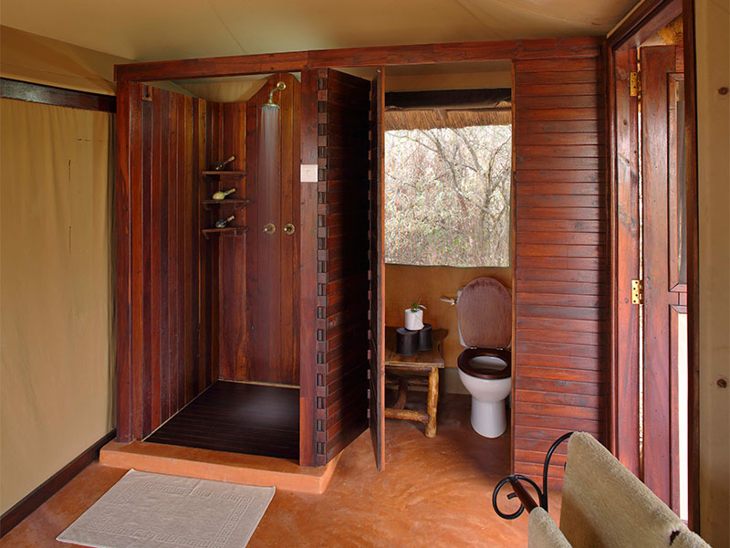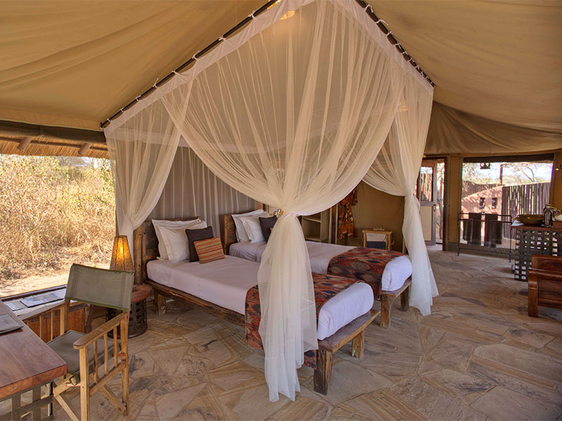 Het kamp bestaat uit 15 en-suite tenten (waarvan 1 familie tent) in traditionele stijl; vijf aan de ene kant van het kamp met een kleinere loungeruimte en tien aan de andere kant waar de hoofdlounge, eetruimtes en ontbijtdekken zich bevinden.