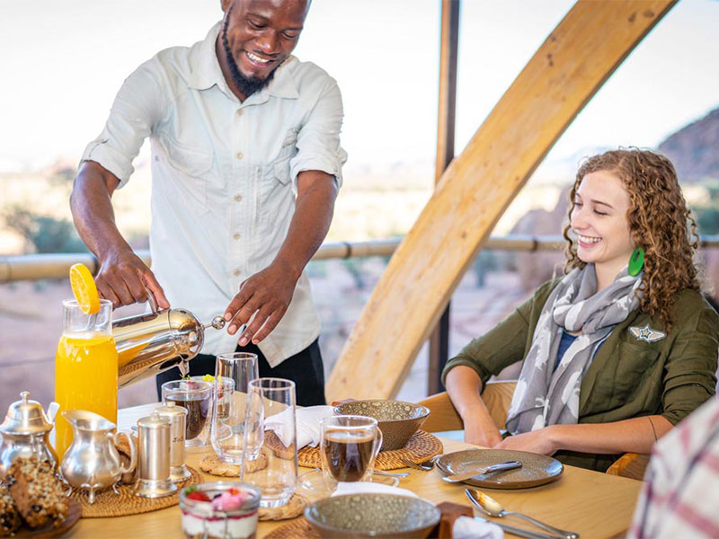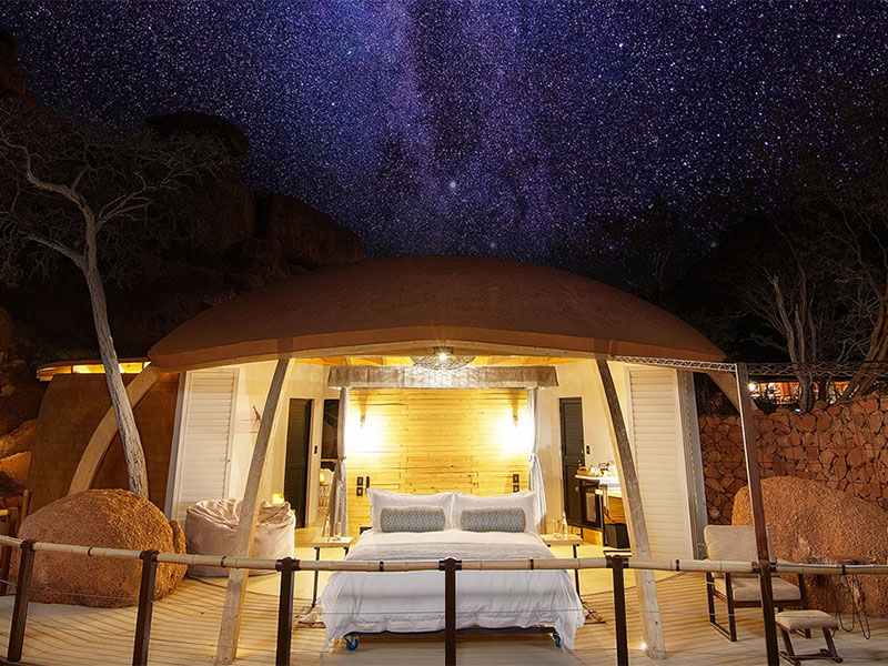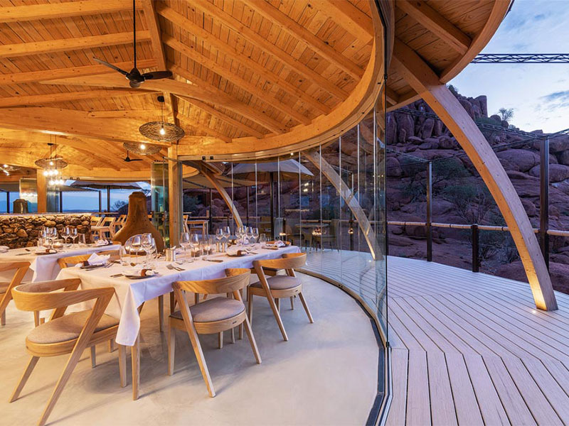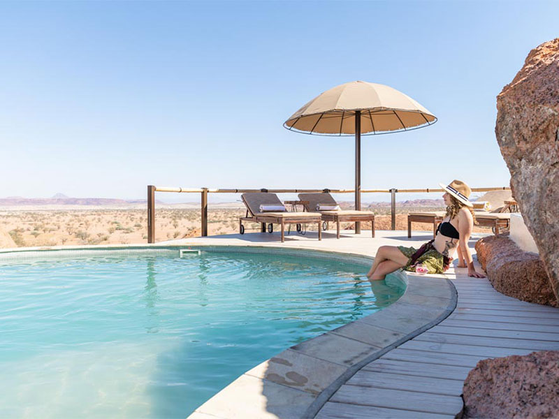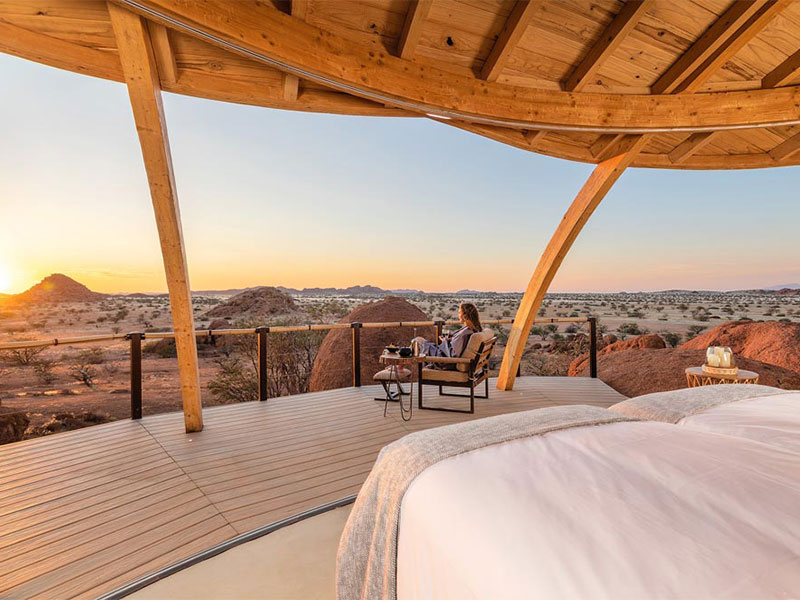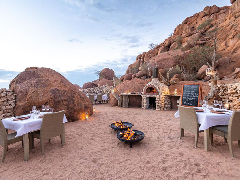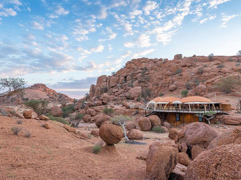 Onduli Ridge is gebouwd tussen de granieten rotsblokken van centraal Damaraland en biedt een prachtig uitzicht op de omgeving.