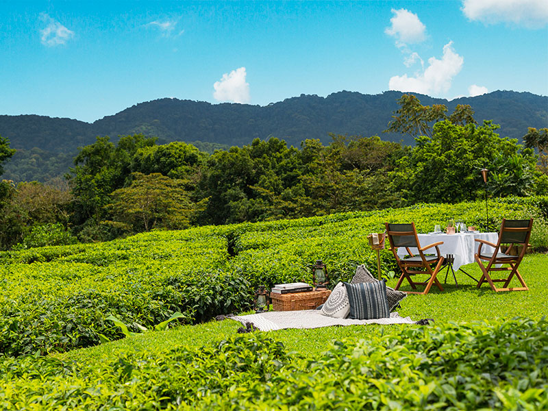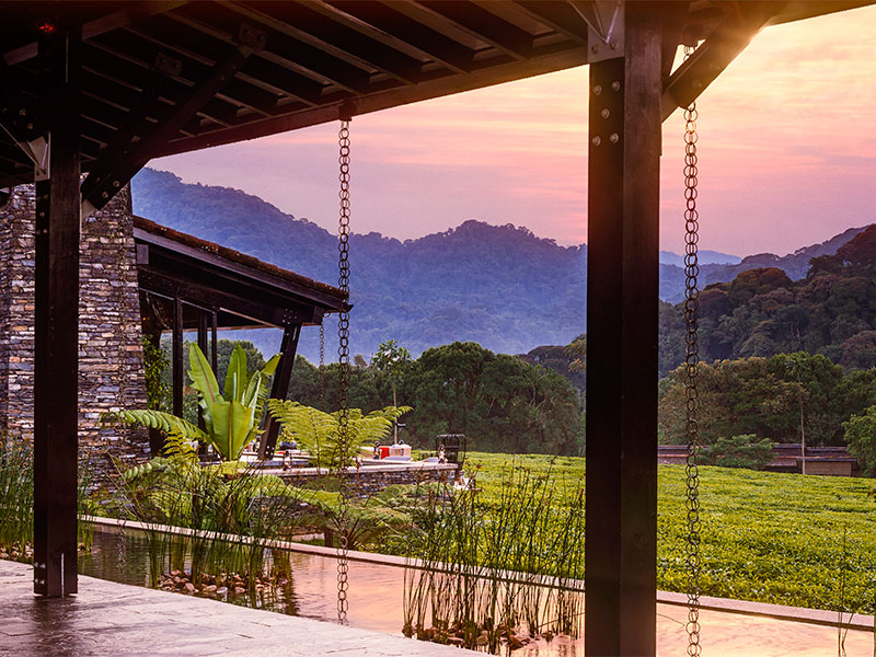 One&Only Nyungwe House ligt midden tussen de theevelden aan de rand van het Nyungwe Forest.