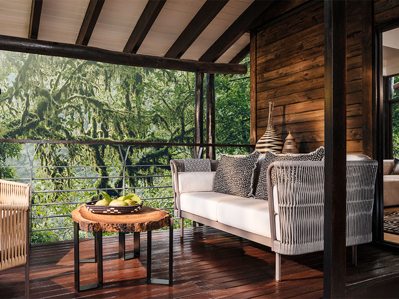 De 22 luxe kamers en suites zijn gesitueerd in 8 prachtige houten villa's, allen met een privé veranda en een adembenemend uitzicht op het Nyungwe Forest.