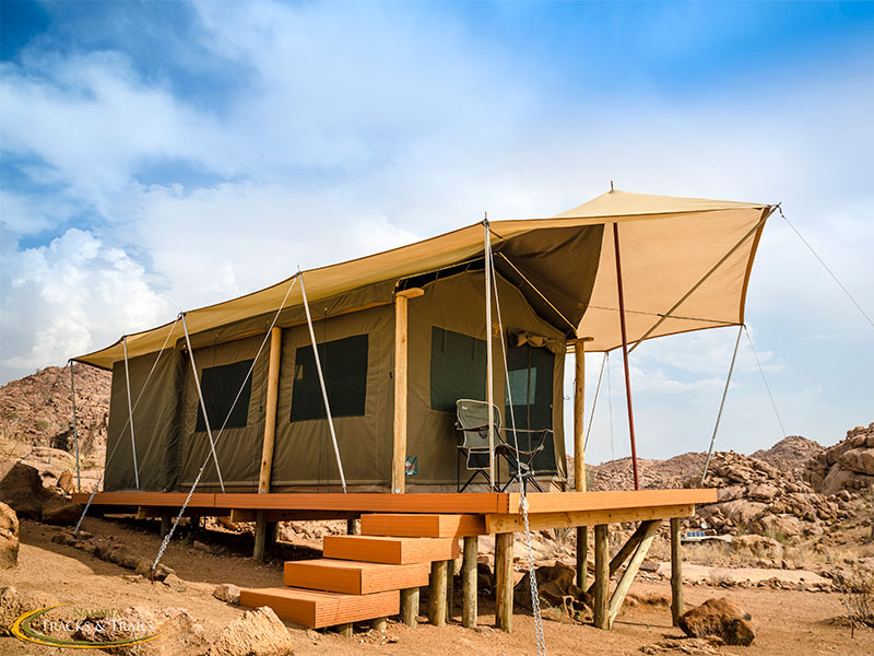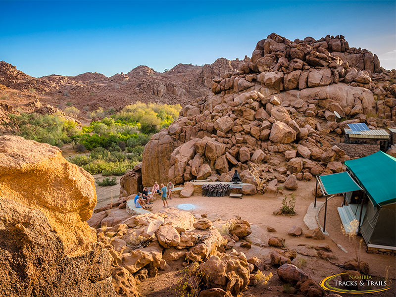 Ozondjou Trails tented camp is gelegen in de Ugab River in Damaraland. Ozondjou is het Herero-woord voor 'olifanten' en dit is heel toepasselijk, omdat het kamp dicht bij het basiskamp van de Elephant Human Relations Aid (EHRA) ligt.