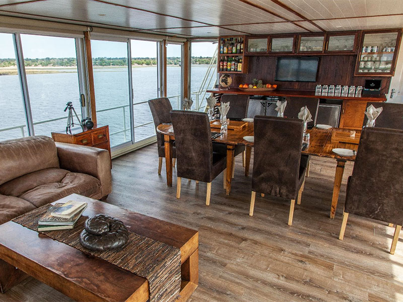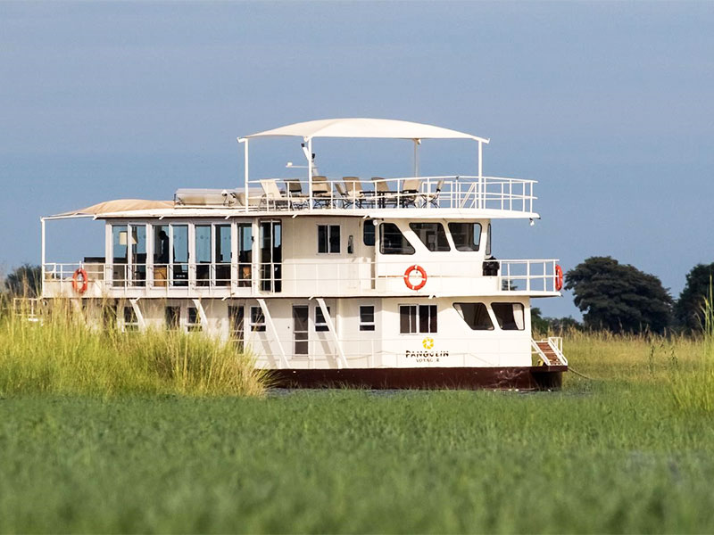 The Pangolin Voyager Houseboat is een luxueus ingerichte drijvende lodge die vaart op de Zambezi en Chobe rivier, vanwaar verschillende wildlife activiteiten worden ondernomen.