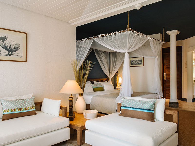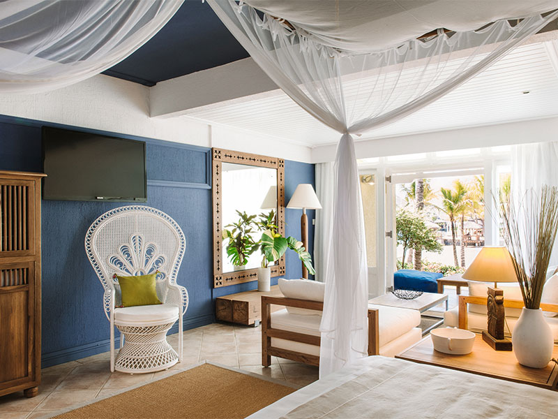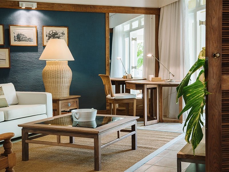 De onlangs gerenoveerde kamers zijn elegant en exotisch ingericht met prachtige zijde en houtsnijwerken. Ze zijn romantisch met een adembenemend uitzicht over het strand, de tuin of de lagune en beschikken over een balkon of een terras en een ruime badkamer. Er zijn 4 soorten kamers: Deluxe, Deluxe Premium, Junior Suites en Senior Suites.