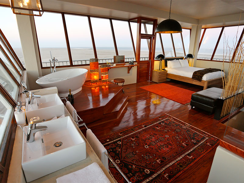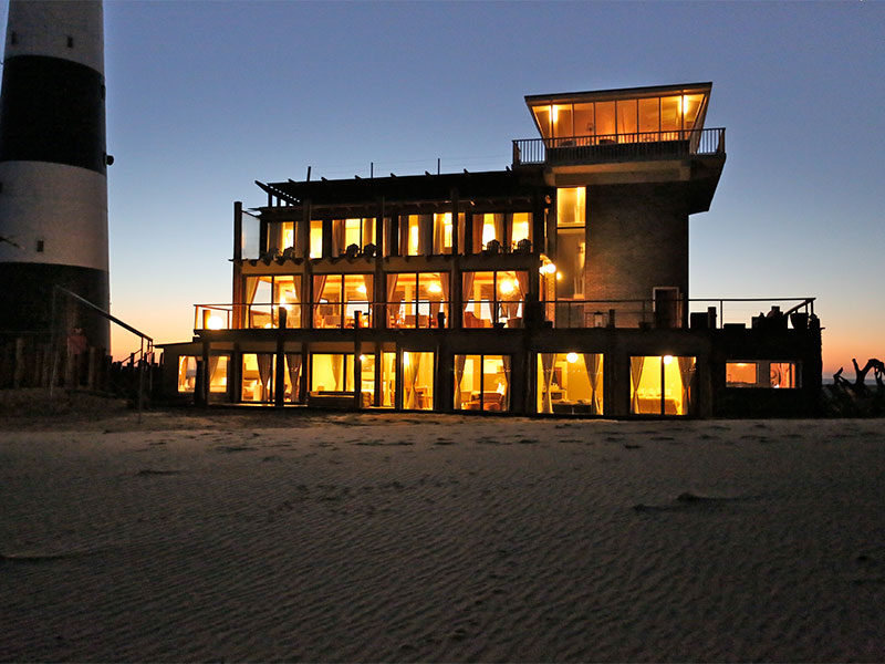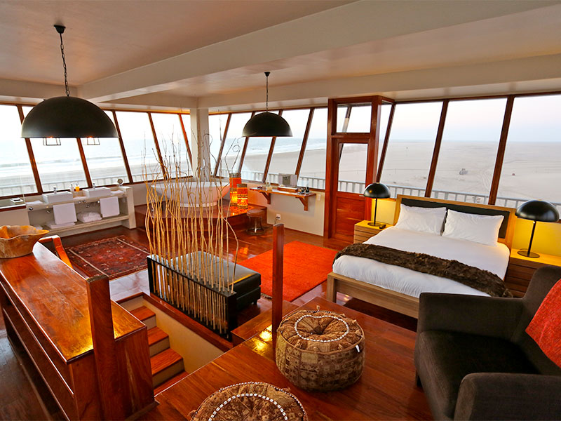 De Pelican Point Lodge ligt aan de voet van een historische vuurtoren op het afgelegen schiereiland Pelican Point in Walvis Bay, een unieke locatie voor het creëren van herinneringen die een leven lang meegaan.