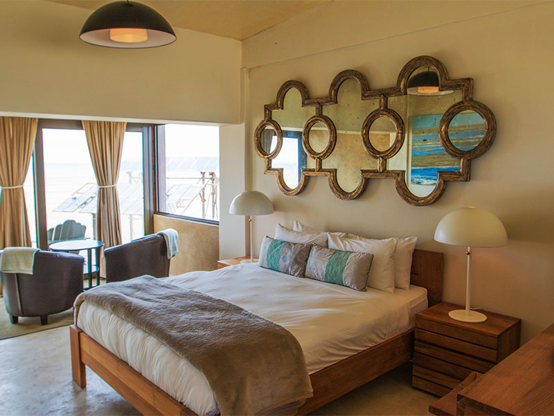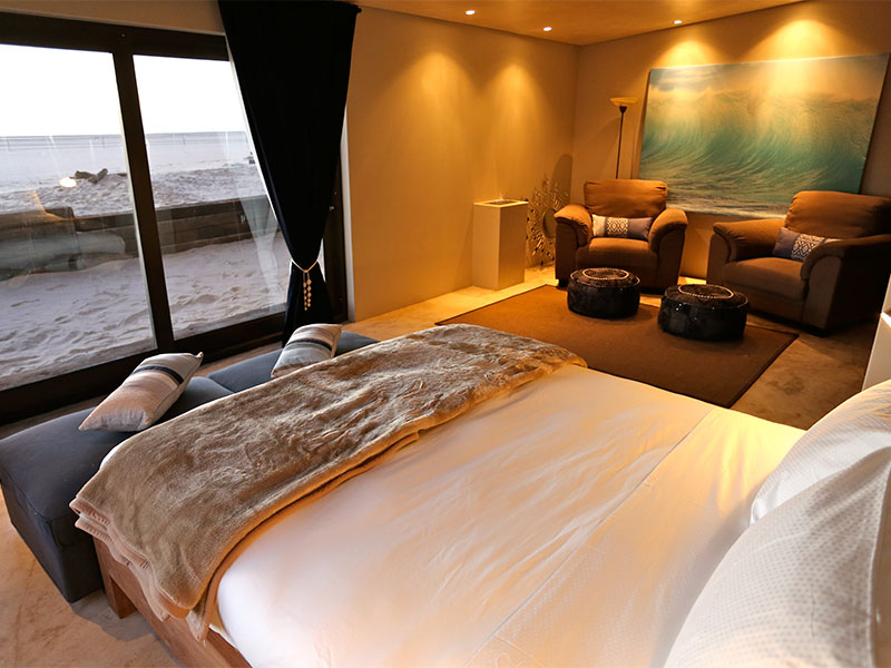 De eigentijds ingerichte kamers hebben een zithoek, een open haard en een en-suite badkamer met douche. Alle kamers bieden panoramisch uitzicht over de oceaan en het strand, bezaaid met zeehonden, pelikanen en scheepswrakken.