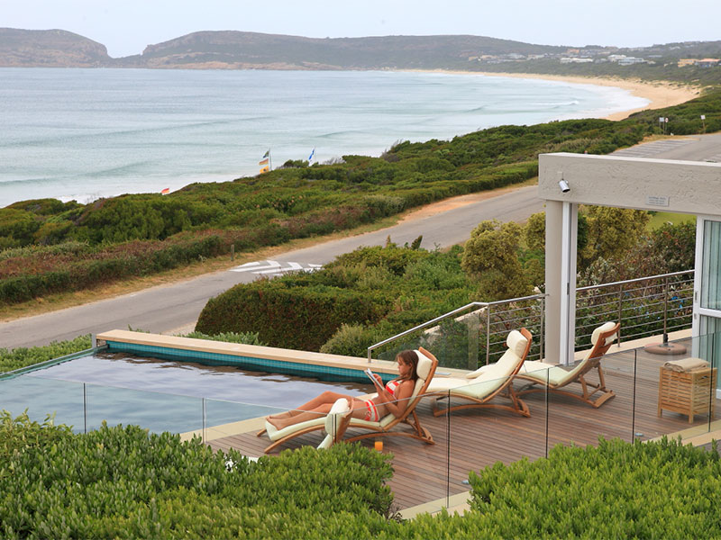 De moderne Periwinkle Guest Lodge ligt aan het brede strand van Plettenberg Bay en biedt uitzicht op Robberg Beach en de bergen van Tsitsikamma.