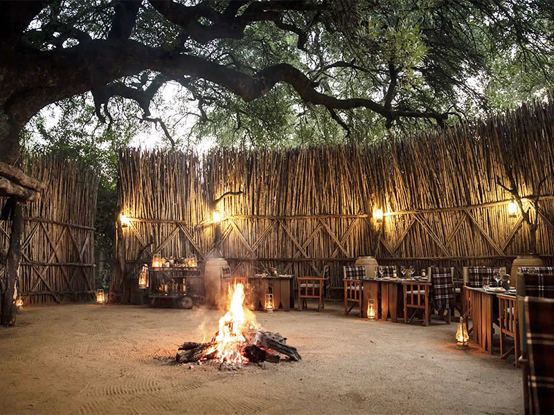 U kunt genieten van maaltijden in de eetzaal, op het houten dek, in de traditionele boma of in de privacy van hun eigen suite.