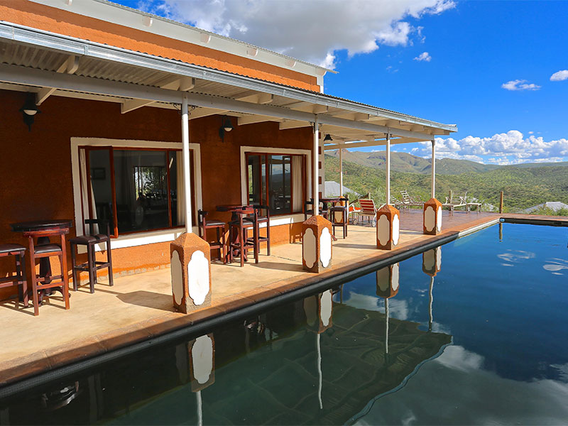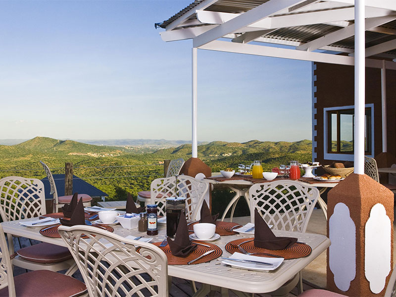 Het ligt op slechts 5 minuten van het hart van Windhoek. Het hoofdgebouw van de lodge bestaat uit een eetkamer, een centraal gelegen bar, een lounge met open haard en een curiosahoek. Buiten tussen de lounge en het eetgedeelte bevindt zich het zwembad en het verhoogde houten terras dat zich uitstrekt onder de zon.
