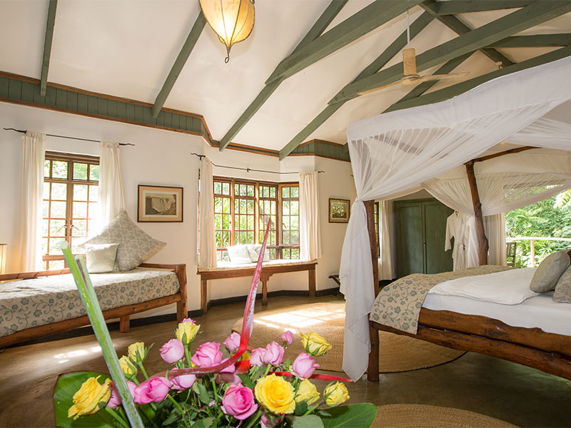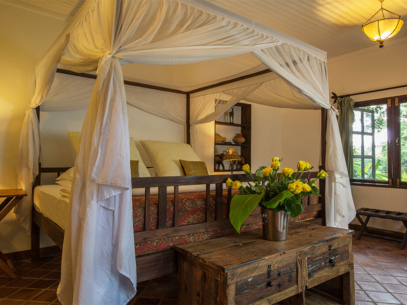 Rivertrees heeft 8 gastenkamers in het hoofdgebouw, 2 River Cottages en het River House met twee 2-persoons kamers, een woonkamer, privé veranda en een open haard.