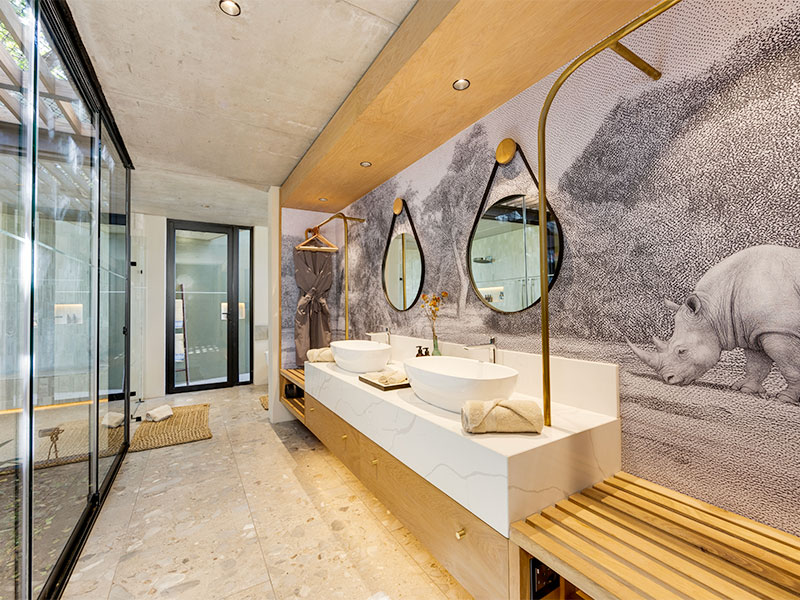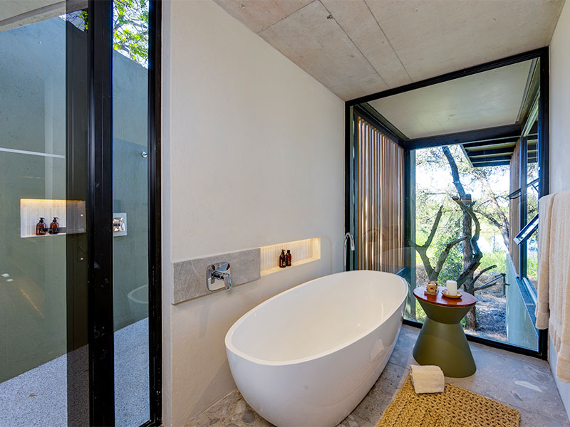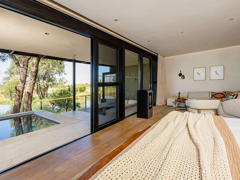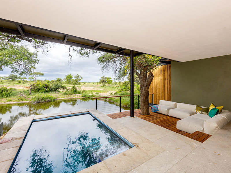 Uw suite in de RockFig Safari Lodge is ruim en comfortabel ingericht en voorzien van airconditioning, wifi, minibar, kluisje en koffie- en theefaciliteiten. De kamers beschikken over een en-suite badkamer met bad, een binnen- en buitendouche en een privéterras met een plunge pool en uitzicht op de bush.
