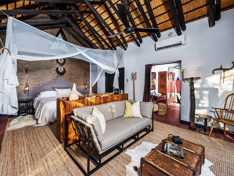 1 Ivory Presidential Suite met dezelfde faciliteiten als de Lourenco Marques Suite, dineren in de kamer, privé safarivoertuig met ranger en privé zwembadje.