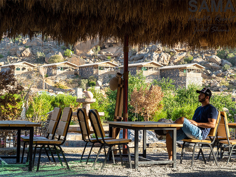 Sama Heights Resort & Spa ligt aan de voet van de berg Jabal Shams en kijkt uit over de rauwe en natuurlijke schoonheid van de regio, ook wel bekend als de Grand Canyon van Arabië.