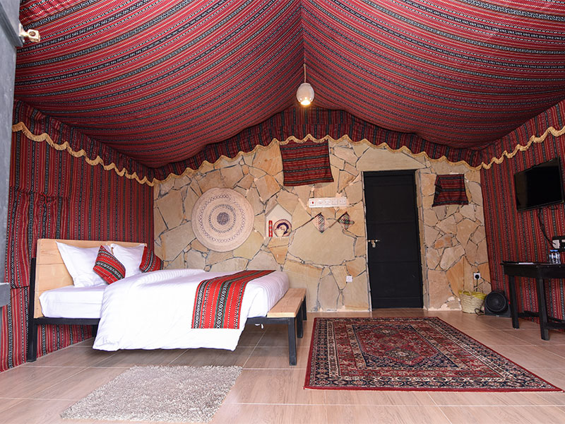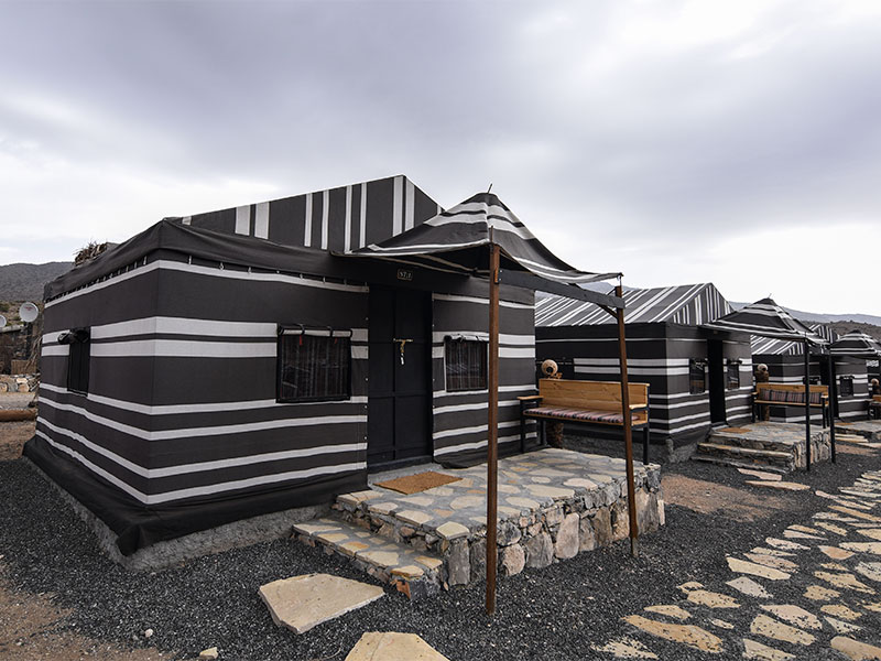 Sama Heights Resort Jebel Shams beschikt over in totaal 53 authentieke tenten en bungalows, allen met een fantastisch uitzicht en voorzien van moderne faciliteiten zoals airconditioning en een en-suite badkamer met douche. De tenten zijn ingericht in een typisch Arabische stijl. De bungalows hebben een zithoek met stoelen en een eettafel.