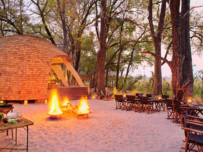 Sandibe Okavango Safari Lodge ligt in een privé concessie van 270 km2 in het zuidoosten van de Okavango Delta, grenzend aan het Moremi Game Reserve.