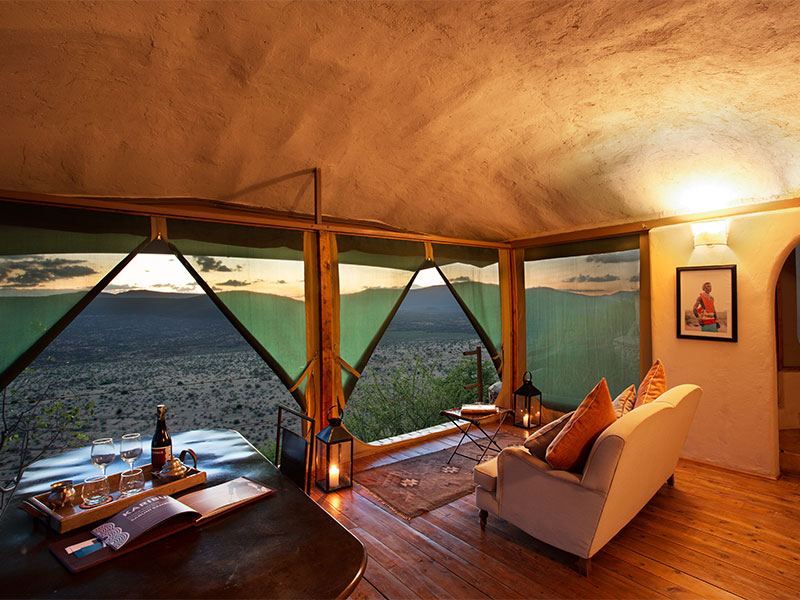 Saruni Samburu is een exclusieve en kleinschalige lodge, gelegen op een rotsformatie in de afgelegen Kalama Conservancy, met panoramisch uitzicht over de uitgestrekte savanne.