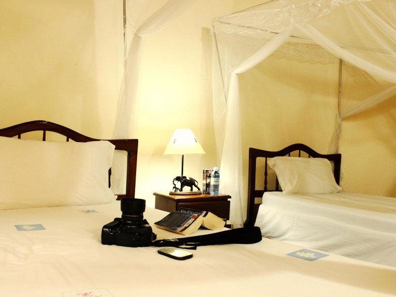 Het hotel bestaat uit 32 rietgedekte banda's, 10 standaard kamers en 2 luxe suites. De een-, twee- en driepersoons bandas zijn allemaal uitgerust met een comfortabele en-suite badkamer. De standaard kamers hebben tevens een eigen balkon.