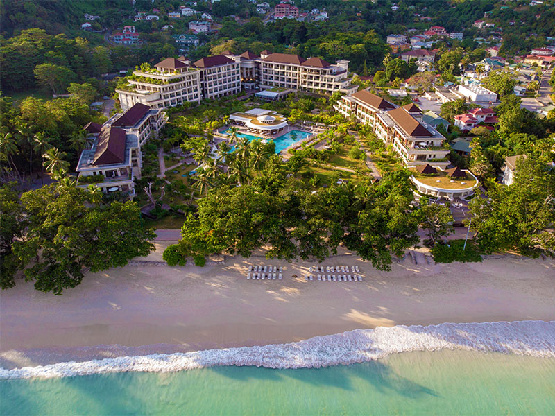 Het luxe Savoy Seychelles Resort & Spa ligt in de baai van Beau Vallon, aan de rand van het populairste strand van het eiland Mahé.