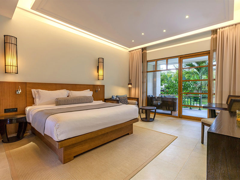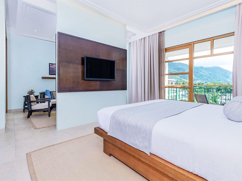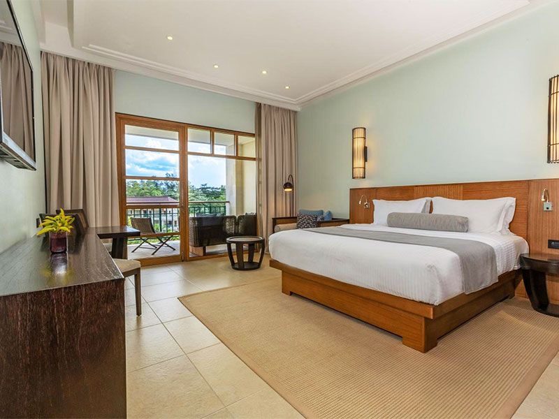 Savoy Seychelles Resort & Spa biedt 163 ruime kamers en suites, allen met een balkon, TV, minibar, airco en een en-suite badkamer met douche, bad en een haardroger. De executive suites bieden uitzicht op zee.