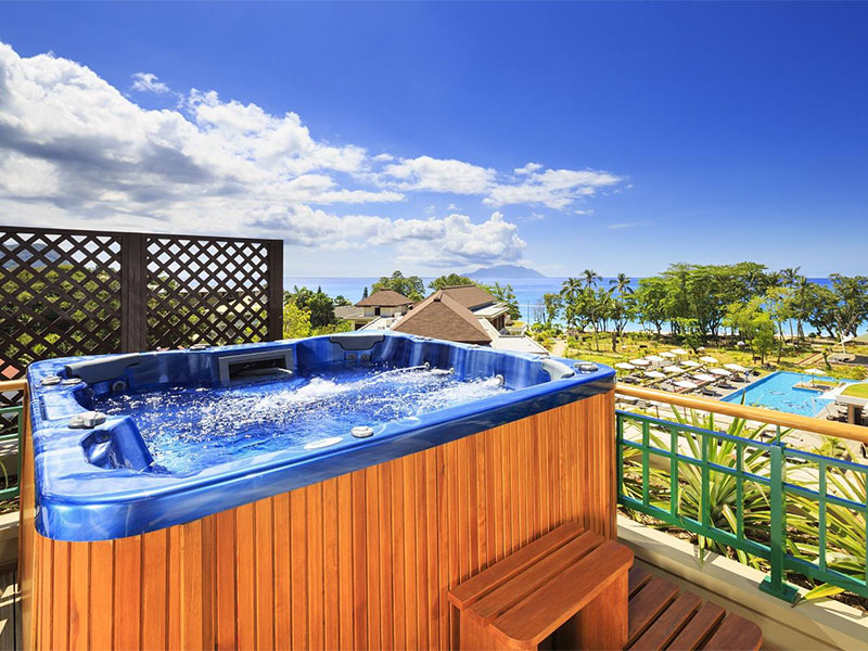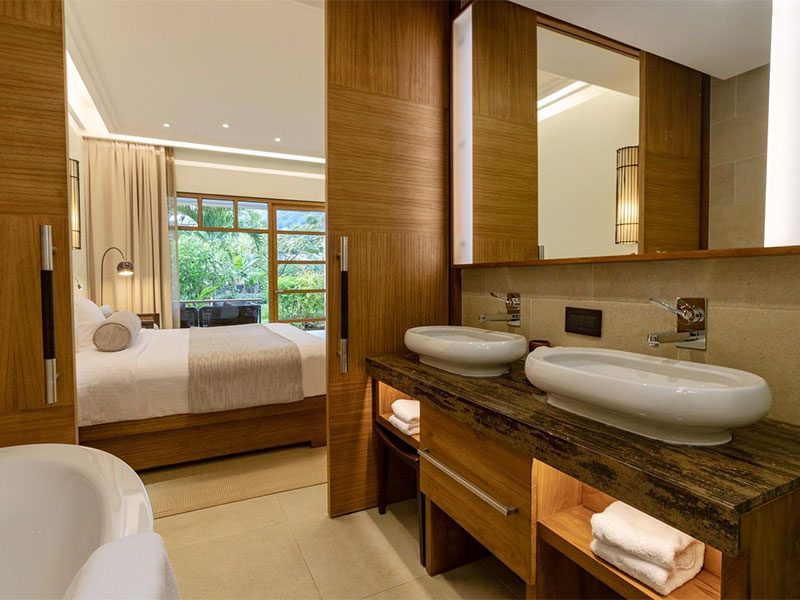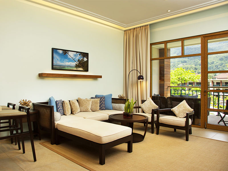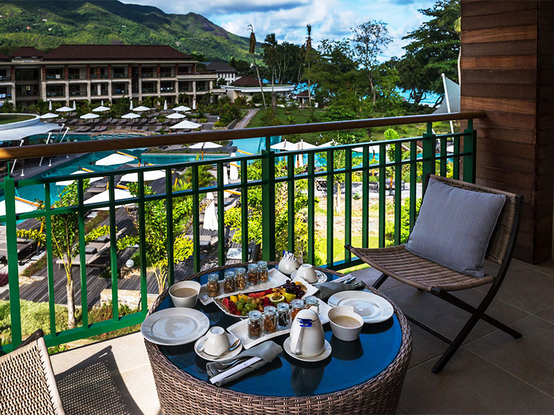 De unieke locatie, opvallende ontwerpen en aangelegde tropische tuinen worden aangevuld door een spa van wereldklasse, een tennisbaan, een fitnesscentrum en een zwembad van 700 m², dat is het grootste in de Seychellen.