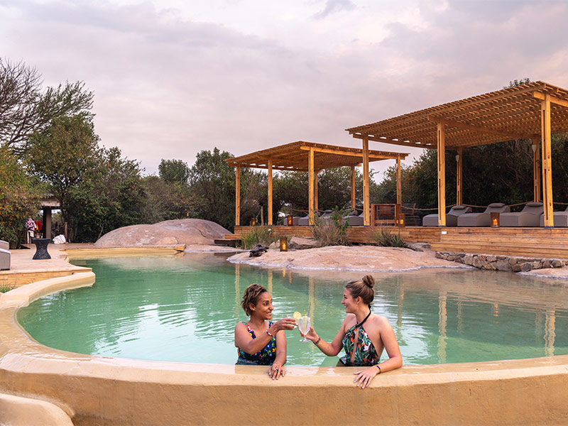 Aan het einde van de dag kunt u zich heerlijk verfrissen in het zwembad. De centrale tent van Sayari Camp is zo gelegen dat u tijdens uw maaltijden maximaal kunt genieten van het landschap. De getalenteerde kok laat u kennis maken met een combinatie van de Europese keuken met verschillende Afrikaanse elementen. Een slaapmutsje rond het kampvuur maken het geheel af. De nachtelijke geluiden zullen jarenlang in uw geheugen gegrift staan.