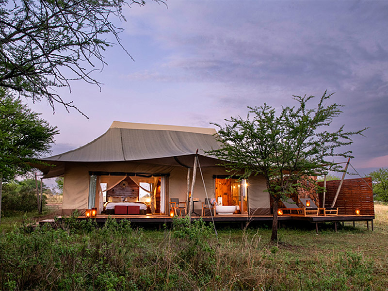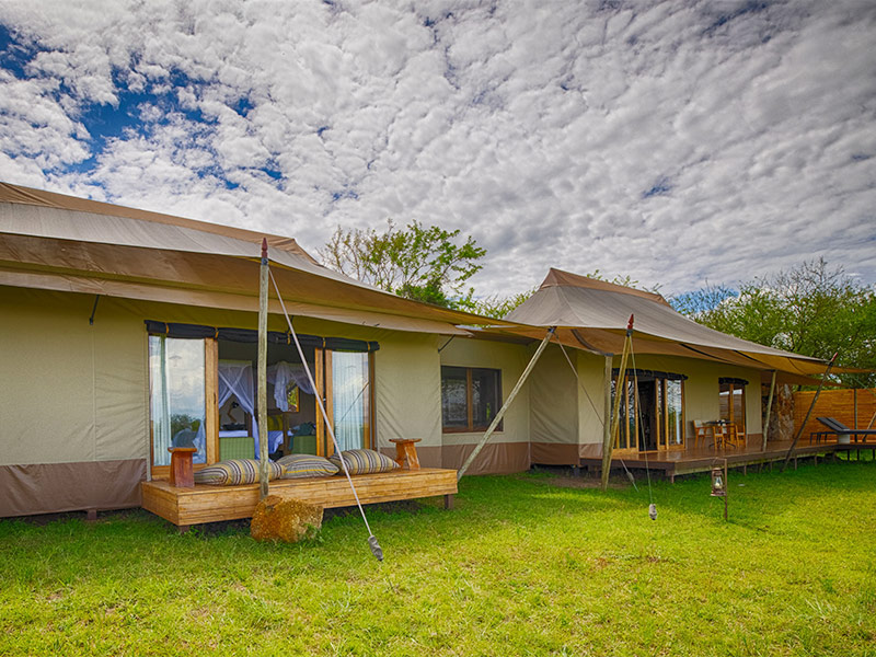 De 8 ruime tenten zijn voorzien van een comfortabel king-size bed, een en-suite badkamer met doucheruimte en toilet en een privé veranda met een comfortabele bank en uitzicht over de vlaktes van de Serengeti. De tenten zijn zo geplaatst dat ze opgaan in de prachtige omgeving.