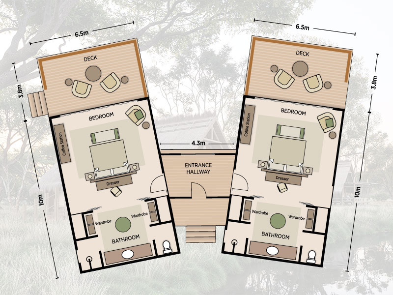 De lodge telt 15 luxe tenten, waaronder 1 familietent met twee en-suite slaapkamers, en biedt plek aan maximaal 30 gasten.