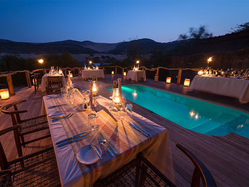 Serra Cafema is een luxe tentenkamp gelegen in het noordwesten van Namibië. Het kreeg haar Portugese naam van de bergen die zich in Angola bevinden.