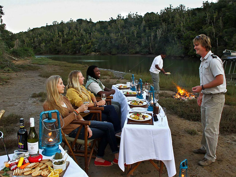 Het ontbijt en lunch worden op het terras geserveerd en zijn van uitstekende kwaliteit. Het diner wordt georganiseerd in de boma met een kampvuur en olielampjes. De creatieve chef-kok van Sibuya zorgt ervoor dat het u op culinair gebied niets zal ontbreken. De gerechten worden uiteraard vergezeld door uitstekende Zuid-Afrikaanse wijnen.