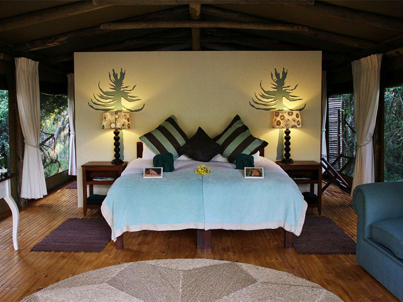 Het beschikt over een heerlijke lounge met een groot terras waar u kunt genieten van de prachtige omgeving. De 4 luxe tenten van 75 vierkante meter zijn allen voorzien van comfortabele bedden en een en-suite badkamer met douche en ligbad. De veranda biedt uitzicht op de rivier, de bush of beide.