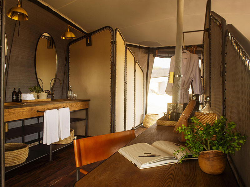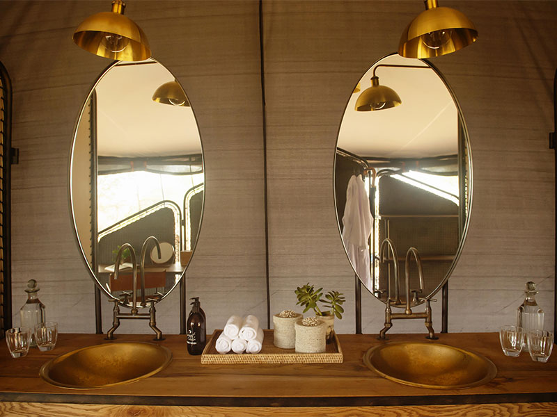 Alle canvas tenten hebben een eigen badkamer met dubbele wastafel, warm water op aanvraag en milieuvriendelijke toiletten.