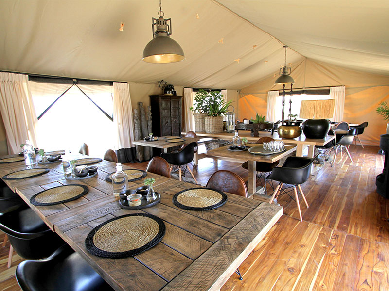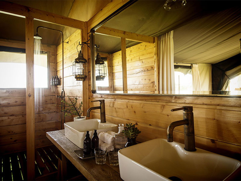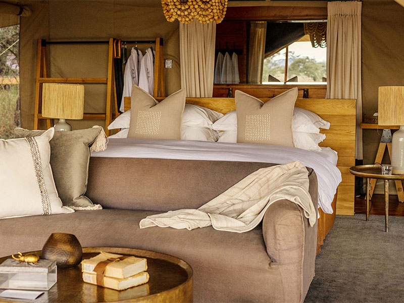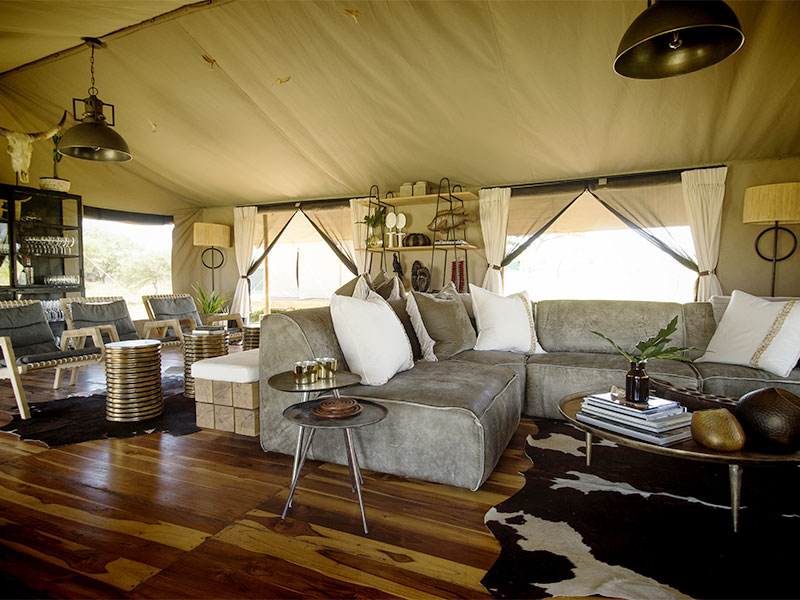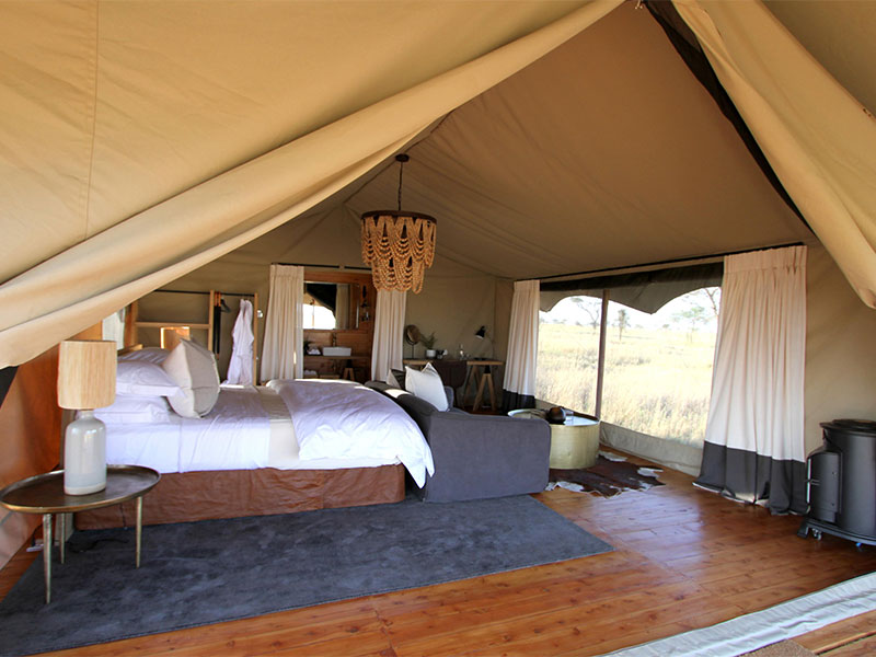 Het kamp bestaat uit 10 exclusieve luxe canvas tenten, waarvan één familietent, ontworpen om de gasten de optimale glamping-ervaring te bieden. Het eetgedeelte, de loungetent en de veranda bieden een panoramisch uitzicht op de Serengeti.