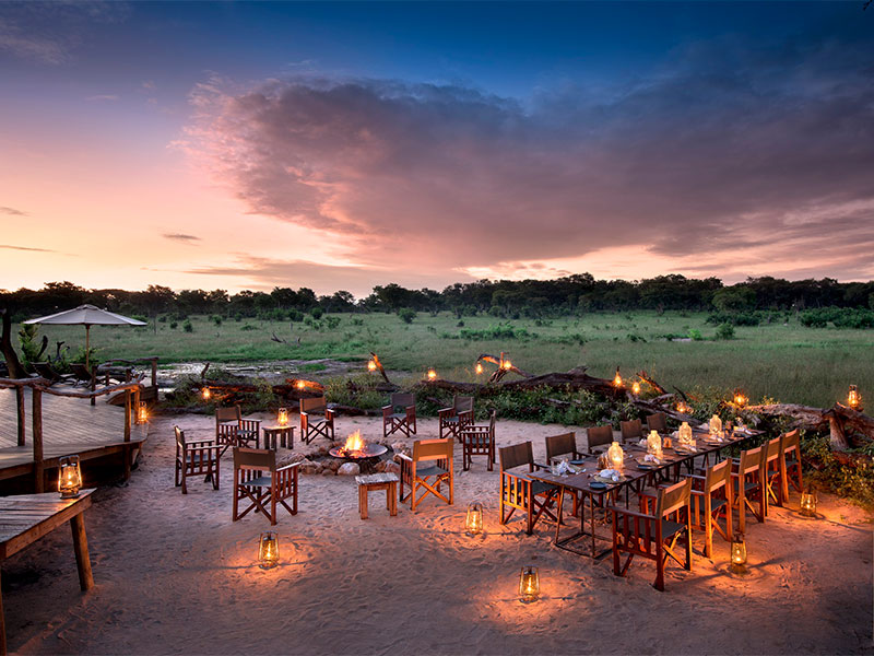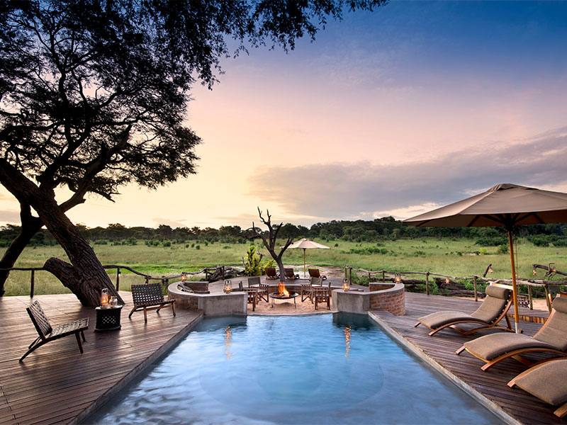 Gebouwd onder de gevlekte kroon van een bos Acacias aan de westkant van Somalisa. Somalisa Acacia heeft een eigen hoofdlounge, een eetkamer, een boma, een gastenzwembad en een olifantenzwembad, allemaal met uitzicht op een prachtige waterput voor het kamp.