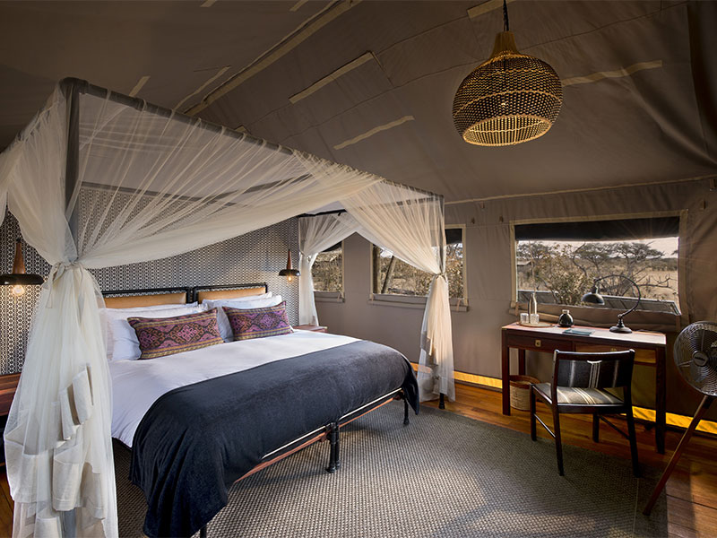 Het kamp bestaat uit zes elegant ingerichte, prachtige Serengeti-stijl tenten, elke met een eigen badkamer met toilet en stromend water.