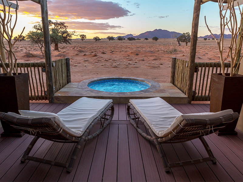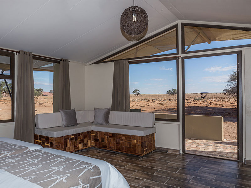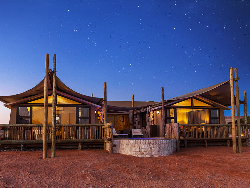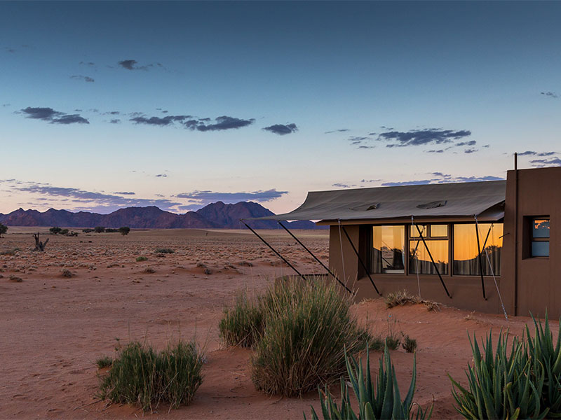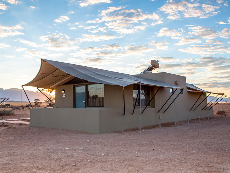 De sfeervolle Sossusvlei Lodge bestaat uit 45 met canvas bedekte bungalows, gelegen in dit onwaarschijnlijk mooie gebied.