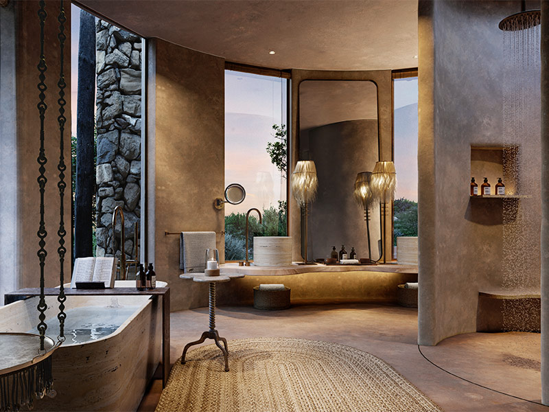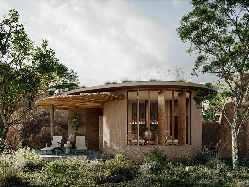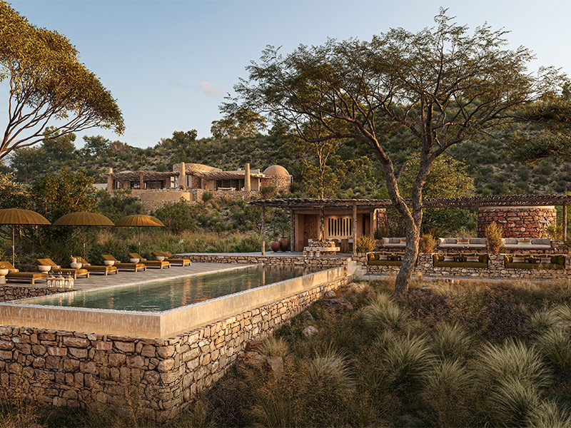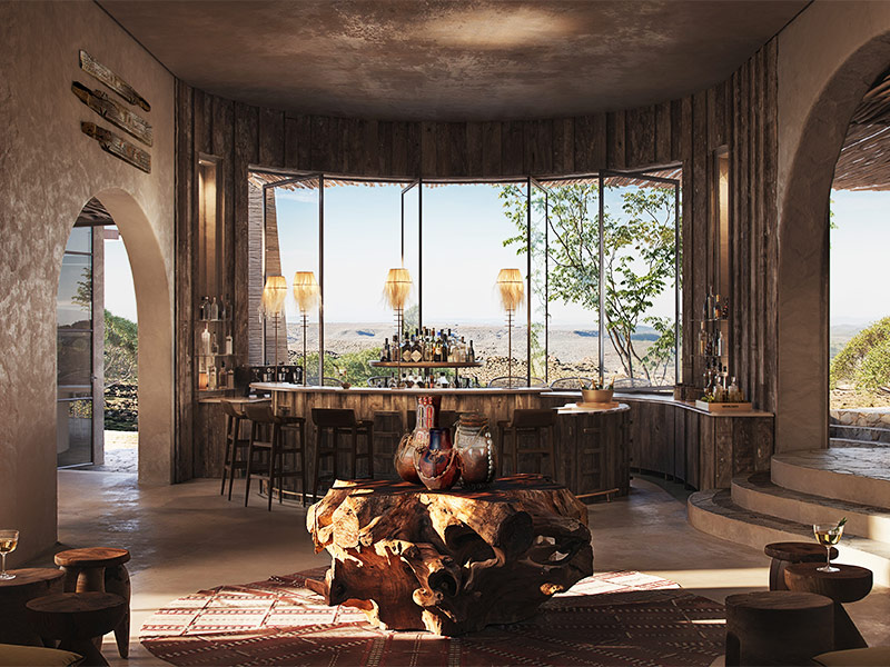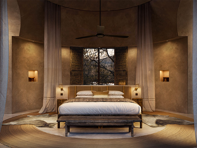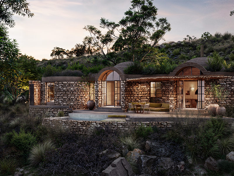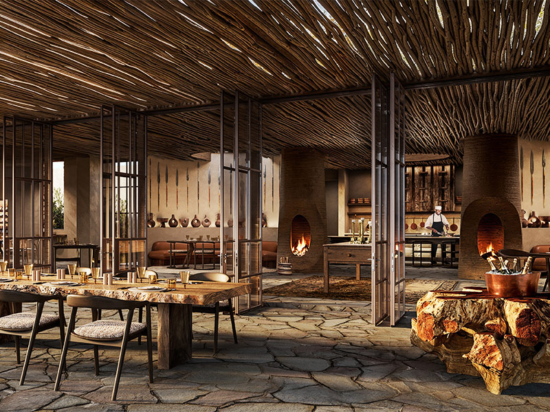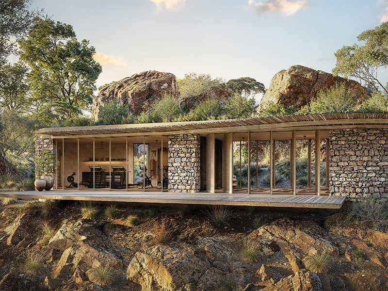 Suyian Lodge gaat naadloos op in de natuurlijke omgeving, geïnspireerd door de eeuwenoude rotsformaties die kenmerkend zijn voor het Suyian Conservancy.