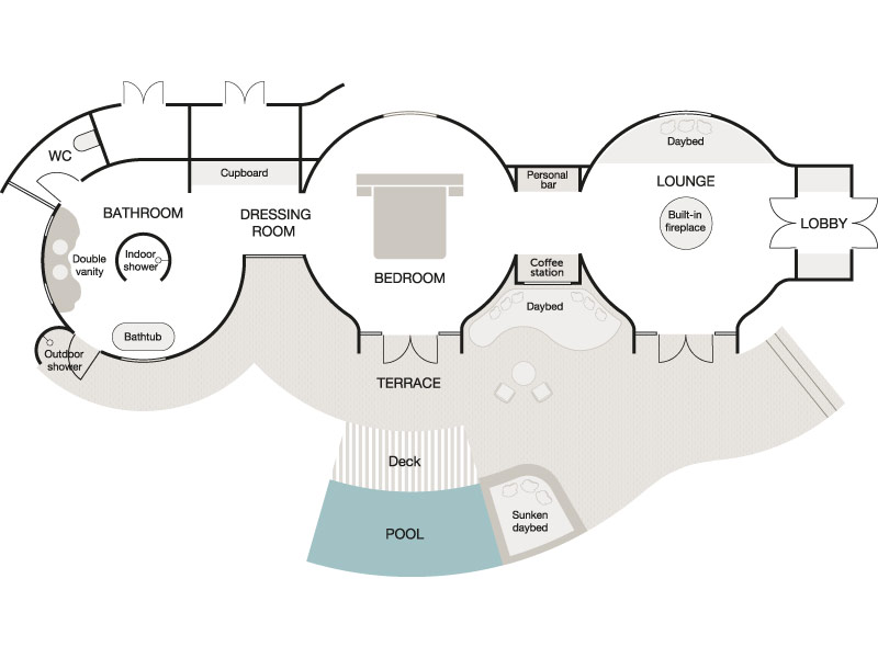 De Suyian Lodge bestaat uit slechts 14 luxe suites, waaronder een familiesuite. Alle ruime suites zijn voorzien van een prachtige badkamer met bad en binnen- en buitendouche, een lounge gedeelte met dagbedden en open haard en een privé veranda met dompelbad.
