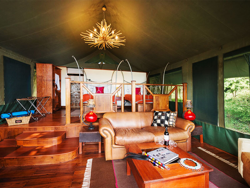 Het bestaat uit 15 grote suite tenten, allen voorzien van elektriciteit en een en-suite badkamer met douche, bad en toilet. De split-level suite tenten hebben daarnaast een apart zitgedeelte en een grotere badkamer met douche en ligbad.