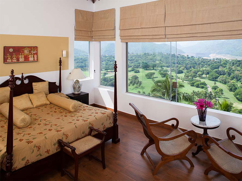 De Tee-Off Suite ligt op de bovenste verdieping en biedt een prachtig panoramisch uitzicht met zijn brede glazen gevel.