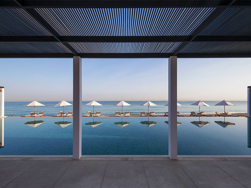 The Chedi Muscat is een modern en minimalistisch hotel, gelegen aan het Boushar Beachfront, is gebouwd in de traditionele architectuur van Oman en biedt een oase van rust en privacy.