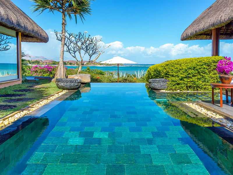 De in totaal 72 kamers zijn verdeeld over 48 Luxury Pavilions (70 m²), 6 Luxury Villas met tuin (250 m²), 16 Luxury Villas met zwembad (325 m²) en 2 Royal Villas met zwembad (650 m²). Allen zijn smaakvol ingericht met natuurlijke kleuren en materialen. Tevens beschikken ze over een ruime badkamer met verzonken bad, aparte douche en toilet en uitzicht op de subtropische tuinen. De meeste villa’s hebben een verhoogd terras vanwaar u kunt genieten van het uitzicht over de Indische Oceaan.
