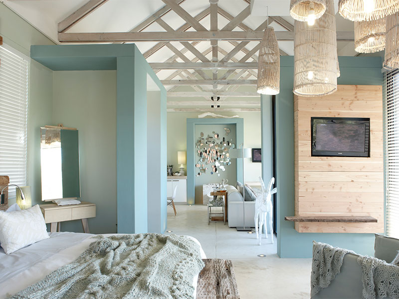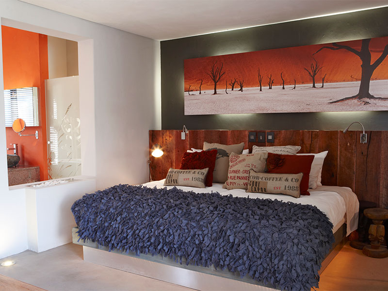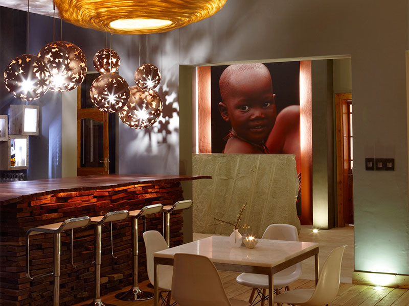 De 7 suites zijn individueel ingericht in de stijl van een regio in Namibië en voorzien van een lounge met open haard, airco, TV, telefoon, Wifi, minibar, luxe badkamer en een eetkamer voor privé diners. Brede glazen deuren bieden toegang tot een ruime terras waar u kunt ontspannen of genieten van een al fresco lunch.