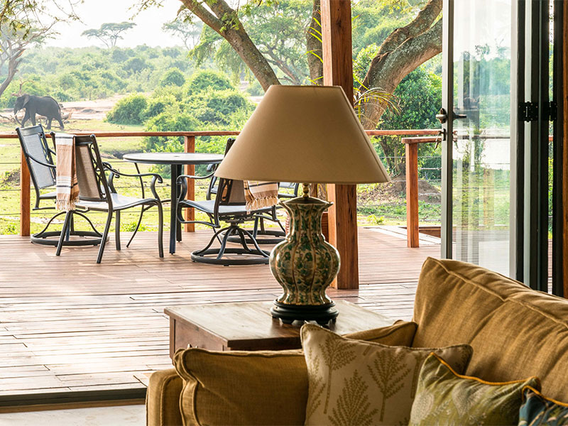 The River Station is een unieke safari lodge, gelegen op een klif boven het Kazinga-kanaal in het Kyambura Game Reserve, onderdeel van het Queen Elizabeth-gebied.