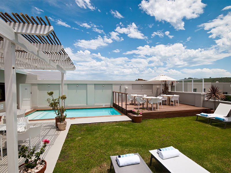 Robberg House biedt haar gasten alle luxe van een penthouse op steenworp afstand van het strand. Geniet van sundowners op het dakterras van Robberg House, met panoramisch uitzicht op de oceaan en Robberg Nature Reserve.