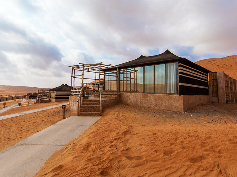 Thousand Nights Camp is een uniek tentenkamp, gelegen tussen de gouden zandduinen midden in de Wahiba Sands woestijn.